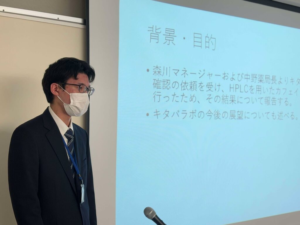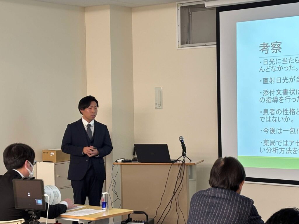 薬剤師は広島大学と連携して行った研究の成果発表と自社に設置しているHPLC分析機器を用いた発表。