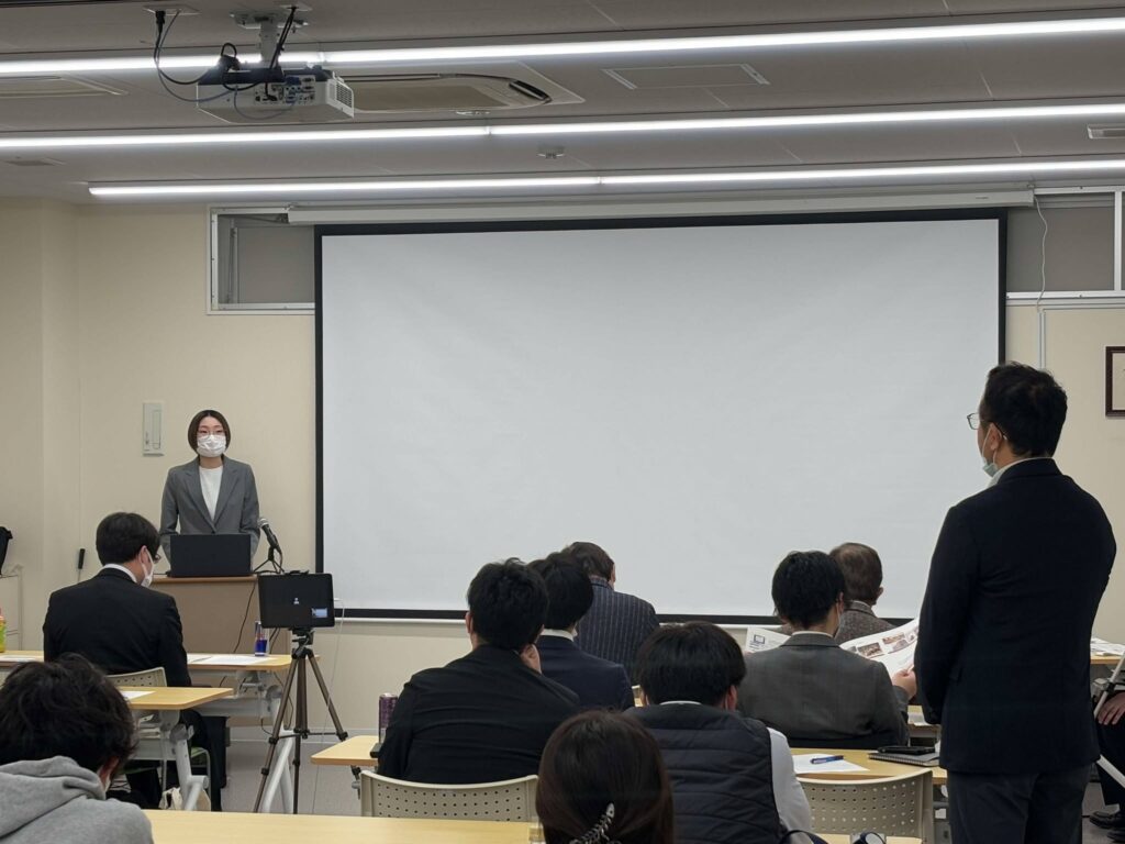 管理栄養士は薬局での新たな取り組みに向けての発表。